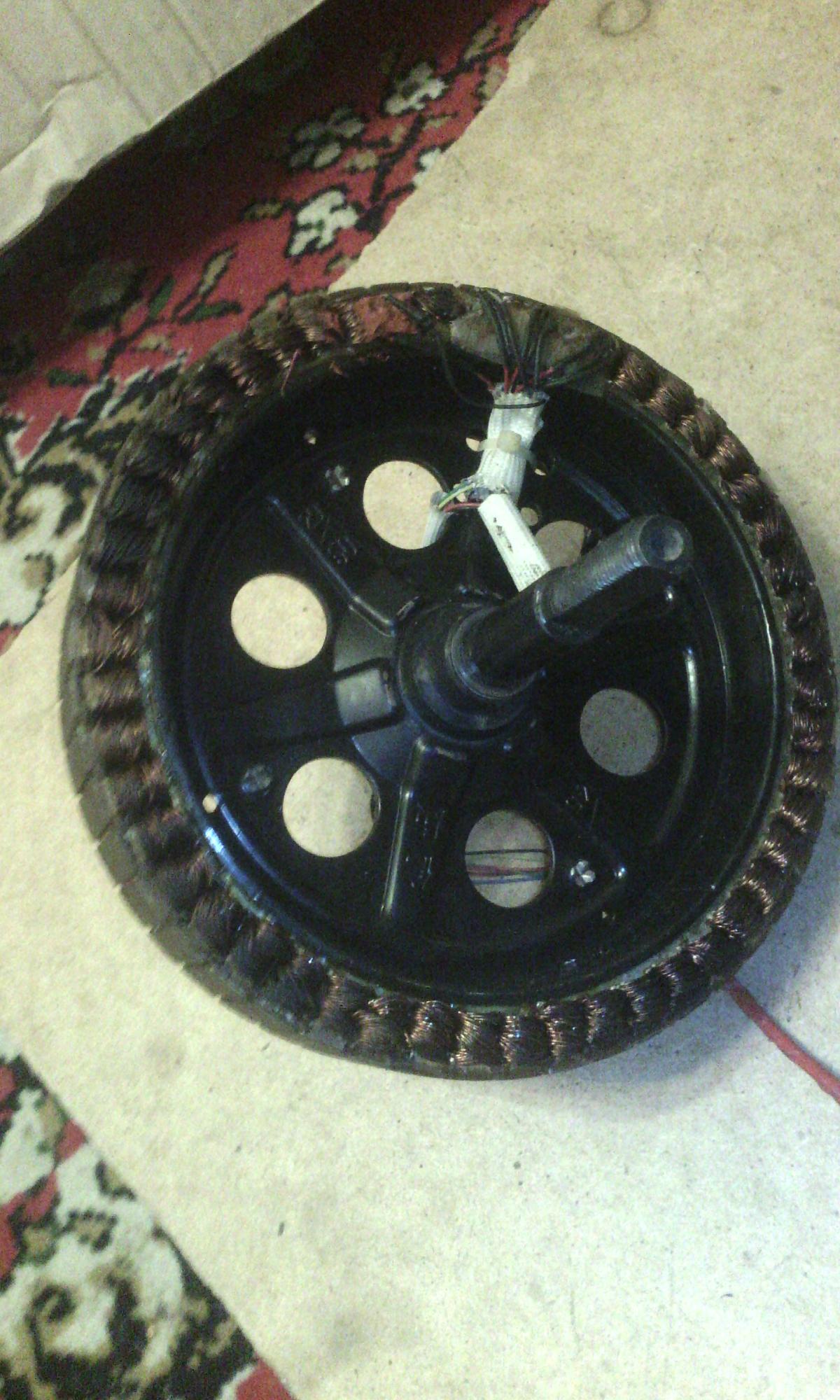 Ехал по дороге на нормале (батарейный не более 35А), съехал ч/з сугробчик на тротуар и метров ч/з 15-20 загорается протект, газульку отпускаешь гаснет затем снова нажимаешь опять протект - смотрю на дисплей стоя на месте, а он рисует мощность потребления 6.8 кВТ!!! (стоим на мести и не дёргаемся даже) температура мотора подскакивает до 140-170 за пару секунд - надпись на дисплее батари лоу, вырубаю рубильник, снова врубаю пшшшшшш.... из контроллера донеслось и завонло, вырубаю рубильник, пробую катить - сопротивляется  :D , вытянул фазные из контроллера - ноль эмоций - сопротивляется :tongue: . В общем после фитнес-экшена по доставке его до дома (хороший тренажёр и педали не помогут тут никак), прозвонил провода - звонятся все 3 между собой. Разобрал, отпаял провода - звонятся обмотки все друг на друга.