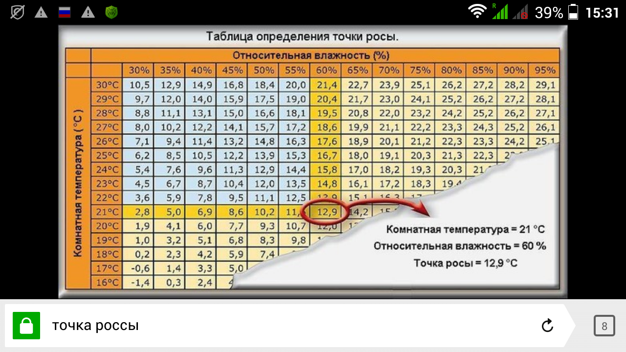 И самое неприятное что выпадет роса не на полу, а на плоскости стен и в углах, где ее достаточно трудно собрать. При +3С в этих местах будет расти плесень.