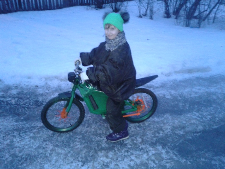 Первый выезд был по очень неровному гололеду, там и мне ехать было не комфортно, но девочка моя не сразу, но справилась. Колесо заднее периодически пробуксовывало на льду даже с этим контроллером.А с роджным Доча наверно и не совладала бы. :-)