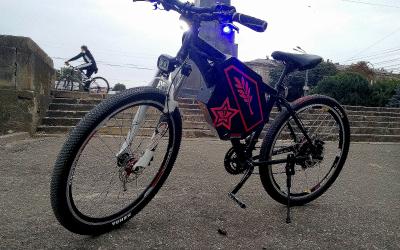 Велосипед "Камушек".  Донор: rossignol decoy 2008, мотор: eLight, контроллер  микро-ядрёный, батарея 48В 17Ач. Максималка 45кмч, вес 23кг.