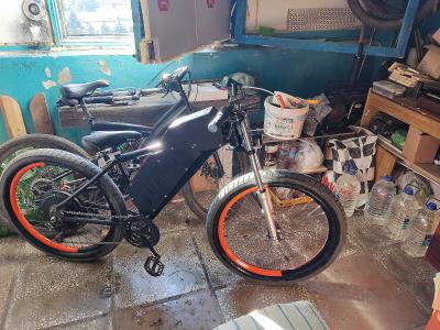Полный привод на базе рамы forward apache v. 3.0 29` Моторы: 500Вт (редуктор мхус) + 1500Вт (ДД медведь). АКБ 52В 37,5Ач + 52В 33,5Ач(быстросъём) = 3,6кВт*ч. Форсаж 1кВт+3.5кВт.  Макс. скорость - 72км/ч.  Дальность в режиме мопеда (~35км/ч) 180км, (~55км/ч) 100км.