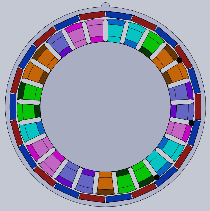 С датчиками только пока не разобрался, т.к. у меня пока нет данных, какой нужен угол "опережения" датчиков относительно фаз. Сами датчики между собой должны быть сдвинуты на на 2n+2/3 магнита, а вот как их ориентировать относительно фаз - надо подумать.