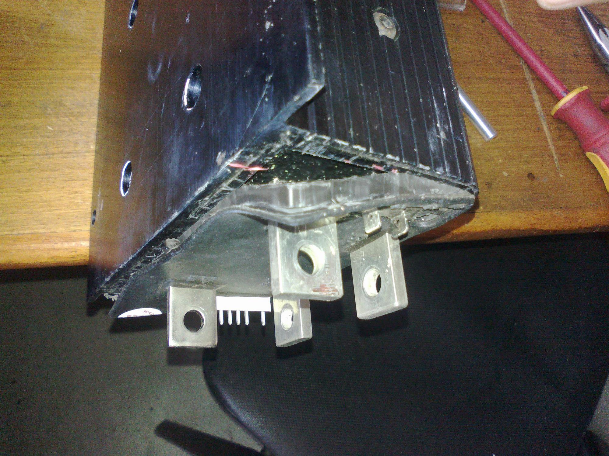 Тут вопрос уже поднимался - как разобрать контроллер для ремонта - он залит резиновым компаундом, с боков пластиковые крышки, снизу 6 винтов сквозь корпус в радиатор.
