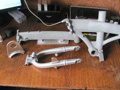 Как говорят , дурная голова  рукам покоя не даёт. Пришёл с суток работы, думаю спать не буду , доделаю всё дабы завтра покрасить. В общем всё сделал, ещё раз собрал, смотрю линия цепи чуть отклонилась. Надо подогнуть кронштейн. Алюминий если нагреть и резко охладить, становится на некоторое время очень пластичным. Потом возвращается в первоначальное состояние. В общем хрюкнул пирометр. Ведь чую, что то не то. Нельзя в общем не спавши, с устатку что-то делать.  Расплавил я его.  Люминя больше нет,  опять у китайцев заказывать. Или из стали делать.  Дурдом какой-то получился.