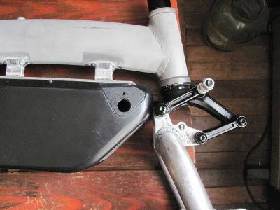 Ещё одна незадача. Пришли крепления для крыла перевёртыша. Там хомуты больше чем надо. Думал что они из АБС пластика и я их легко уменьшу. Капнул дихлорэтаном, не растворяет. Не знаю, можно ли вырезав кусок и расплавив края соединить? Будет ли держать. Подкладывать ещё резинки выглядит совсем уродски. Чую эта вилка не скоро будет готова. Пока на рычажке. Траверсы надо однозначно делать под втулку 74 мм, с такой шириной и таким маленьким колесом вид совсем страшный.