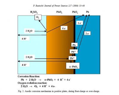 Старая картинка с объяснением механизма коррозии решеток положительных пластин, происходящей при заряде АКБ. Последний раз приводил ее осенью 2017-го в теме про выдуманную дилемму с кипячением.