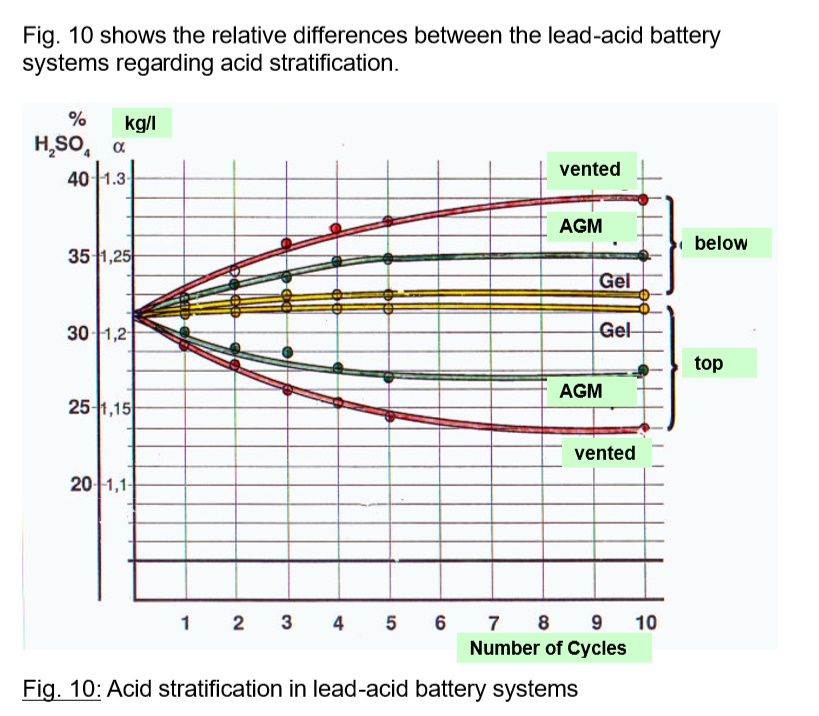 Давно существуют исследования по поводу расслоения в зависимости от типа акб, они показывают в каких акб оно выражено сильно в каких не очень а в каких отсутствует почти.