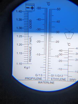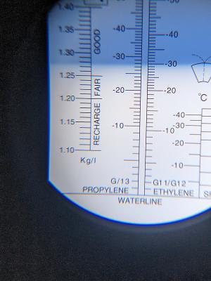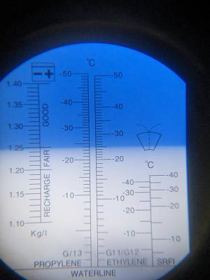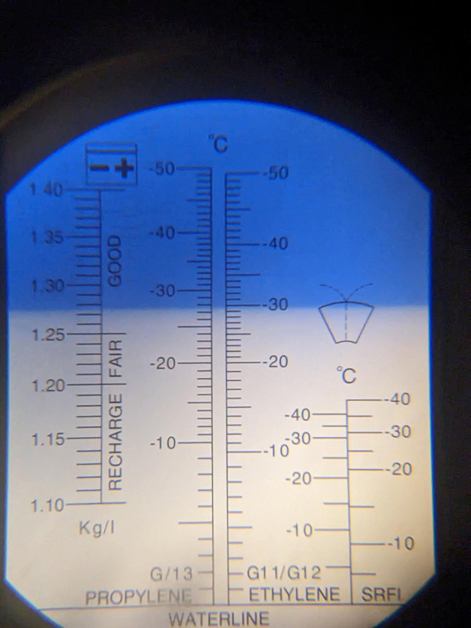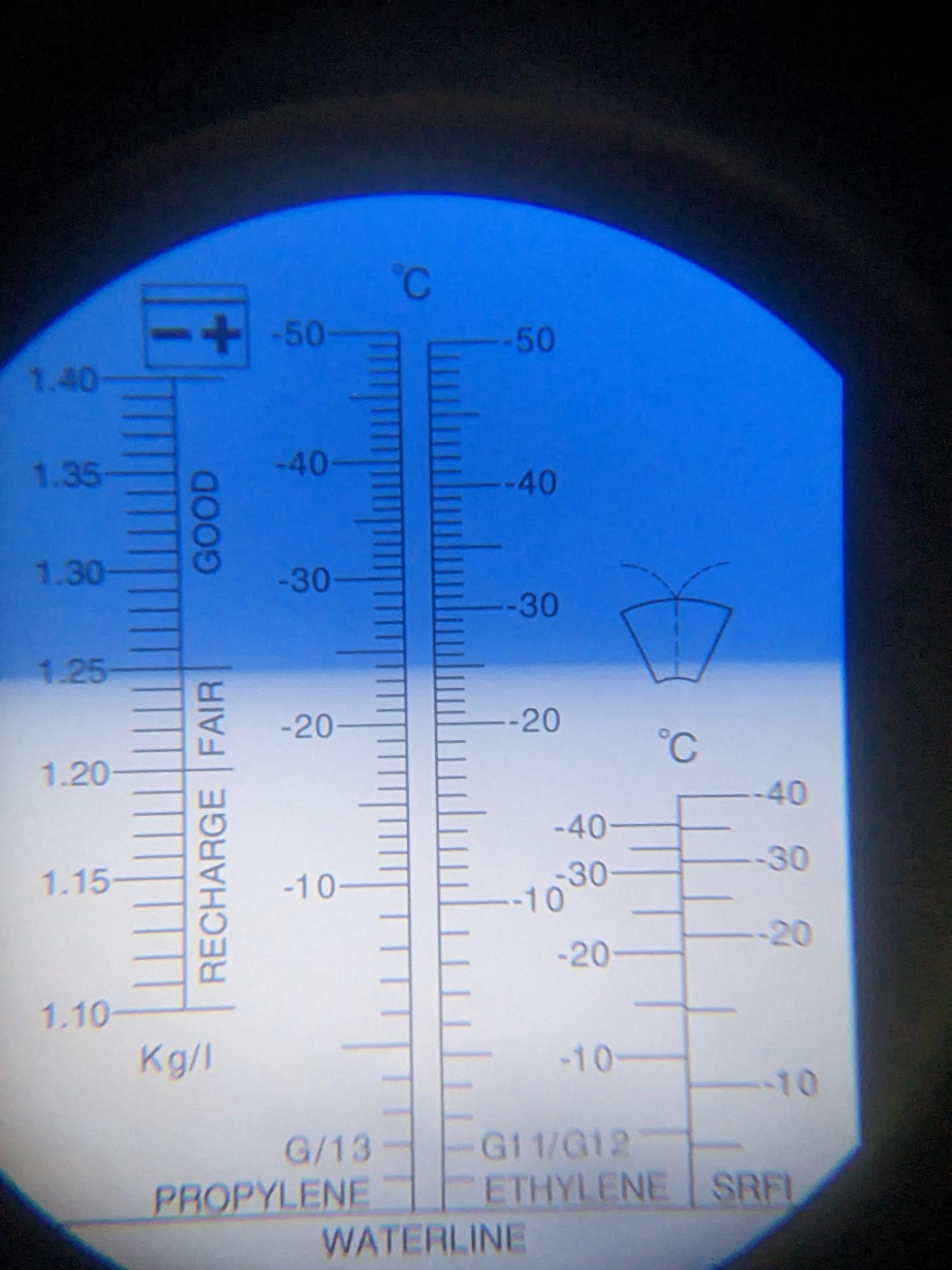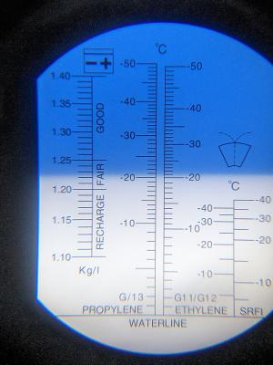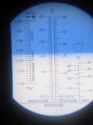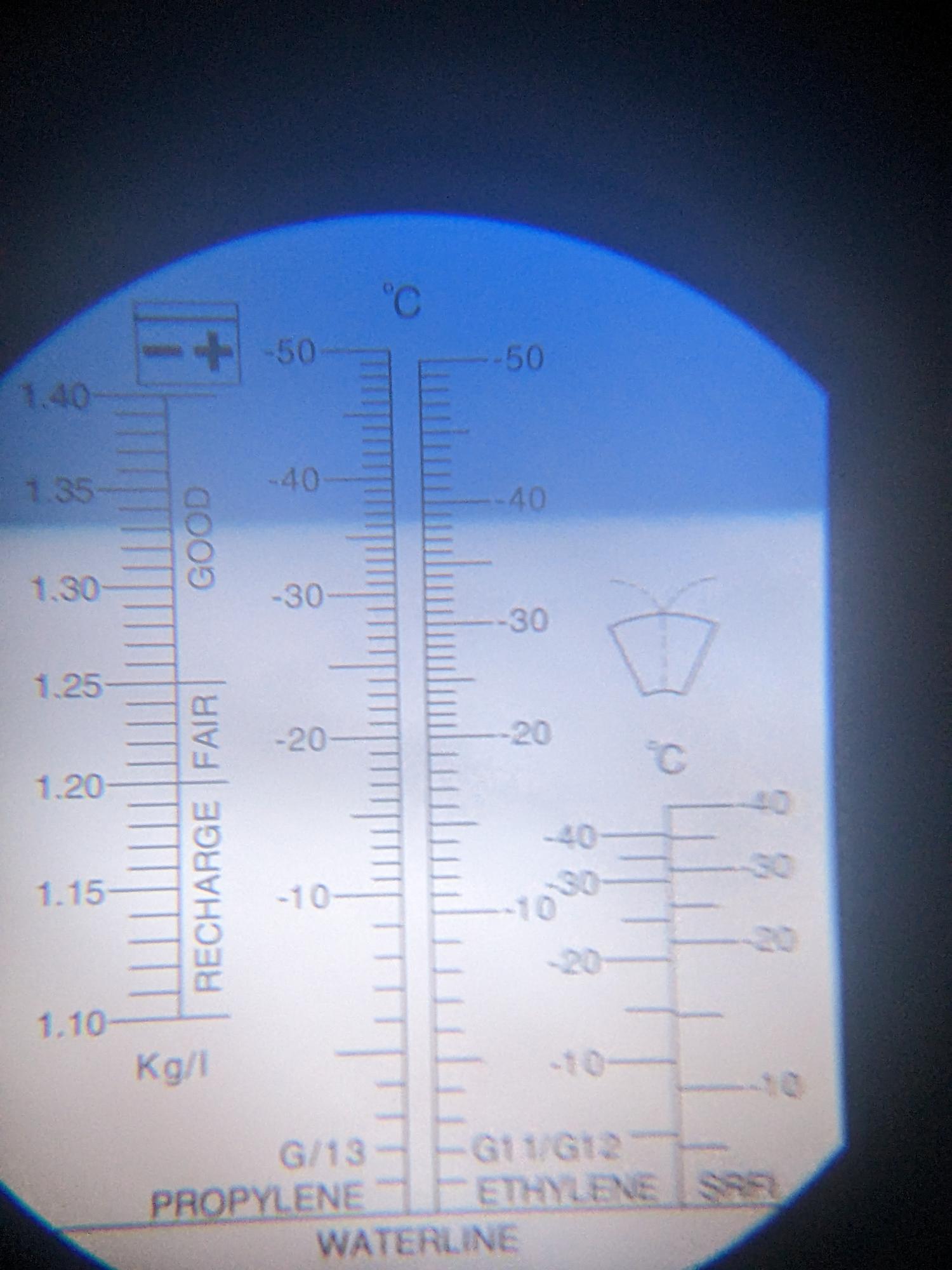 Принеся АКБ домой, я обнаружил снижение уровня, которое я компенсировал, влив в каждую банку по 26 гр дистиллированной воды. После покачав АКБ, немного перемешал и замерил побаночно плотность электролита сверху. Показания рефрактометром разнились от 1,23 до 1,25.