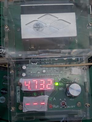 Поставил на разряд для растворения добавленной воды в электролите, стал разряжать до напряжения самой слабой банки, до 12,47 В. Слил 4,7 А/час.