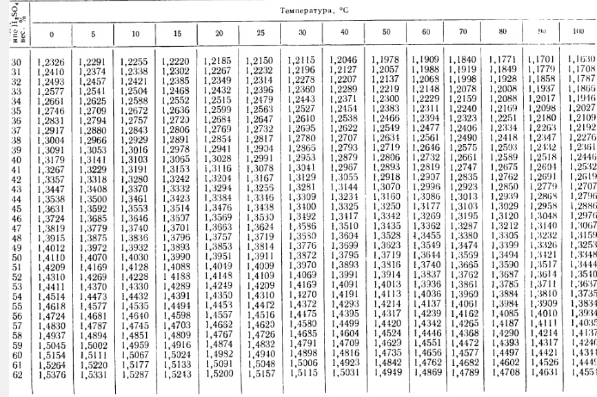 При температуре 60°С плотность электролита снижается до 1,2561 гр/мл.