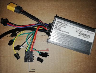 В случае, если здесь что-то неочевидно - лучше потратить лишние 5 минут, развинтить по 5 саморезов с каждого торца и несколько винтов со стороны мосфетов - и открыть контроллер. Там по маркировке контактов все достаточно понятно, сигнальный со скорости - приходит на точку SP (speed), душилка - на точку SL (speed limit), датчики Холла - H1, H2, H3 (hall`s 1,2,3), тормоза, высокий и низкий - HB LB или BK BL (hi brake low brake, brake, brake low), рекуперативный тормоз - EBS.
