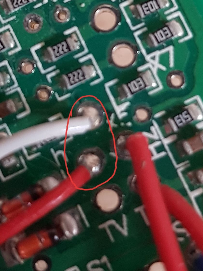 Разобрал, оказалось что платки то внутри отличаются. На второй плате круизный провод (оранжевый) подпаян к контакту Q0 и далее просто висит в воздухе.