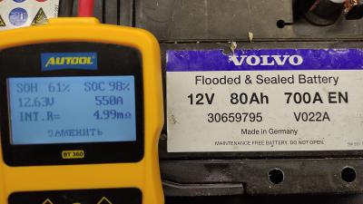 Да ещё, тестер показал внутреннее сопротивление акб в районе 5мом пусковой ток 560а