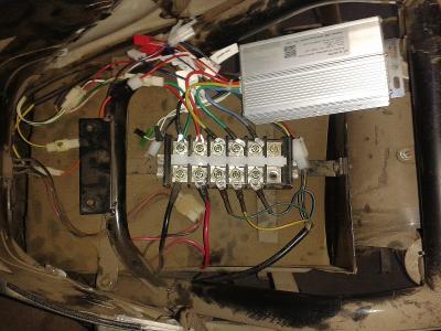 Если мопед "сломался" сам, то проблема скорее всего в контроллере и/или проводах (при повреждениях изоляции на кочках может замыкать фазы между собой или на корпус, в результате жжёт транзисторы). Обычно контроллеры сами без причины не дохнут, но глядя на качество монтажа я допускаю мысль, что этот мог сдохнуть сам.