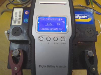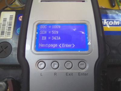 Потребовалось ещё пара циклов, стрелочка успокоилась-решил завершить восстановление. По возможности воспользовался одолженным приборчиком, не знаю стоит ли полностью доверять такому методу тестирования(он на новом стоампернике намерил SOH=59%). Ну вот что намерил на восстановленном: