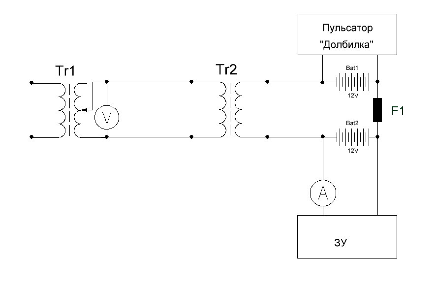 -могу дать наводку: попробуйте схемку 4Т. С её помощью можно подать на акб и постоянку и переменку и напряжение на входе в два раза ниже (удвоится). Импульс мощный короткий и кз не боится.