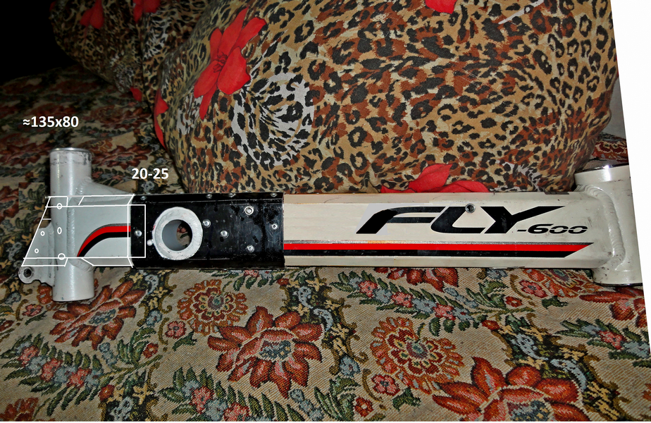 [user]lu4[/user], Моя рама складная Fly-600 ,трещина появилась у замка из за люфта в нем.Сварки на тот момент не нашел,вырезал замок,наложил алюминиевые шины,согнул,обжал ручными тисками и проклепал стальными клепками.Получилось хорошо.