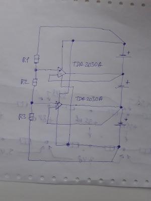 выявил причину "неработоспособности" своего балансира, ещё до сборки на тда2030, и его эксплуатации, но так как работал на 2030 не стал его пускать в дело, но после того как перепутал полярность на 2030(ясно что они сгорели), а изначально они были оригинальные, и после установки других "китайских" которые сгорели даже не поработав, я вернулся на первый мой вариант, в нём причина была такая, верхний на схеме ОУ подключается входами наоборот.