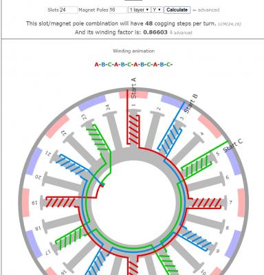 сопротивление меж фаз 0.15 ом. Точнее мой прибор не показывает. Соединение звезда. Зазор большеват, точный диаметр ротора поверх магнитов 55 мм, диаметр внутренний статора 58 мм.