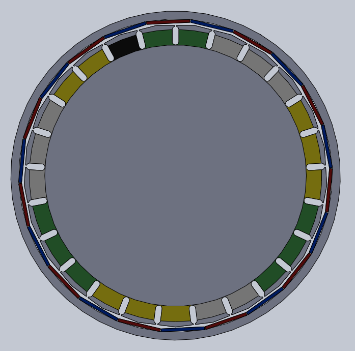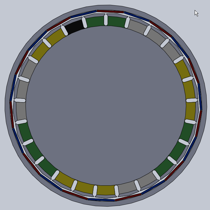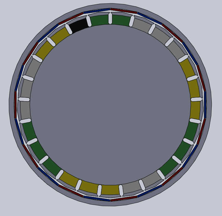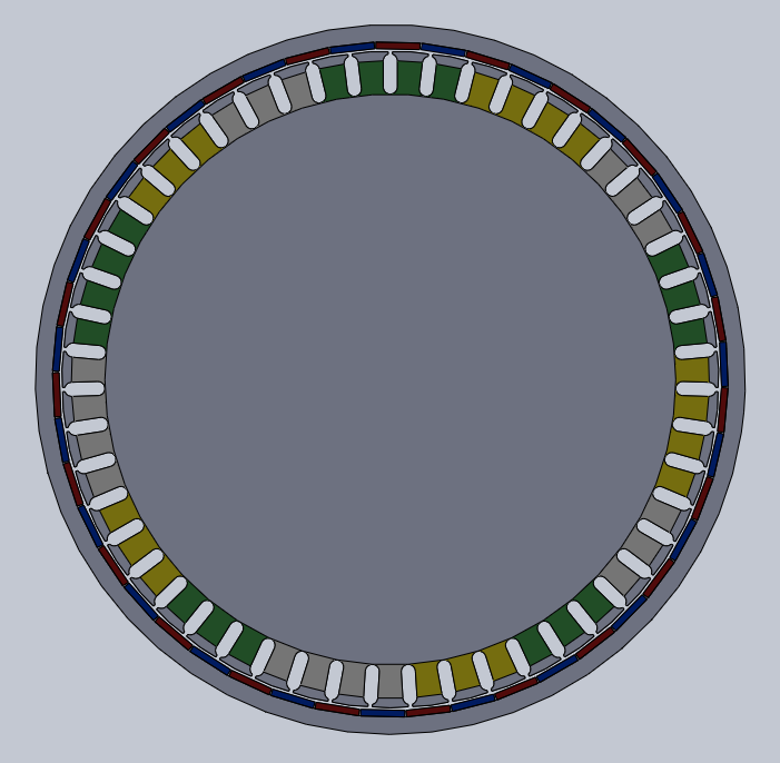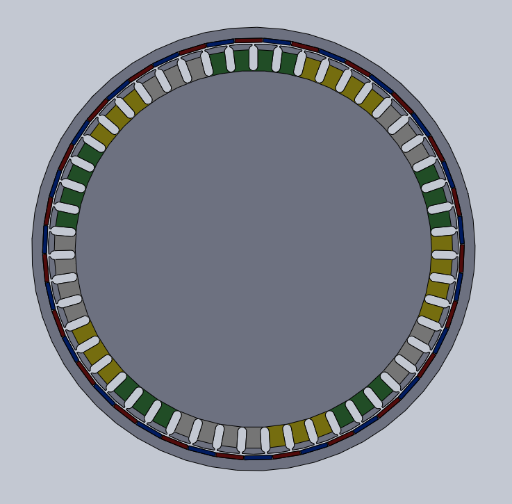 Я накидал эту конфигурацию 51/46 на сборку модели статора и ротора - получилось несколько вариантов распределения обмоток, но в целом суть одна и та же, просто разный порядок.