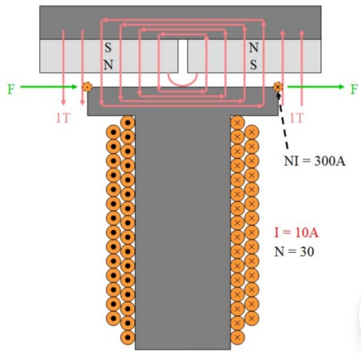 Хороший рисунок, но магнитные потоки идут немного не так , верхняя часть нарисована правильно, а вот через катушки она проходит так же как и магниты, то есть через соседнюю катушку и стальное основание внизу ( откуда эти катушки растут).