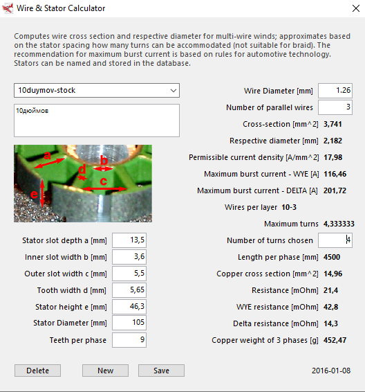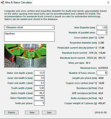 1. Число эффективный проводников в пазу, шт. Не совсем понятно как рассчитать для, например: 10 витков * 9жил, по 0.5мм(0.196кв.мм), звезда(2/3), 27зубов, 30 магнитов, ширина пакета 3.75см.