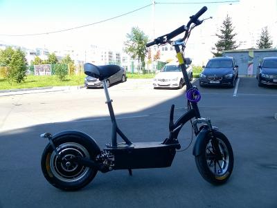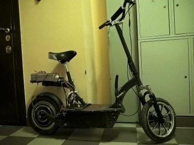 Самокат был куплен в основном, чтобы возить ребенка в школу, лагерь и обратно. Я сижу, сын стоит. Вес экипажа на сегодня 114кг. без багажа. Ежедневный пробег 5,4км. по будням, по выходным зарядка. Иногда покатушки по Поклонной горе. Реальная эксплуатация с апреля и до снега. Ни чего не переделывалось и не улучшалось, кроме тонирования стекла фары и покупки велозвонка.