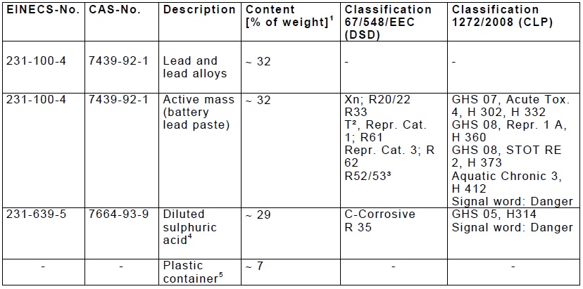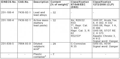 Нашел интересную табличку по % соотношению составляющих частей акб к общей массе.