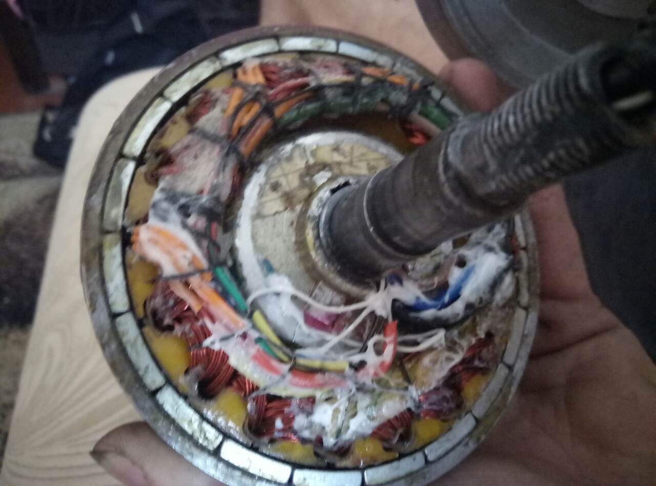 Повредил провод хола в оси,пришлось поменять. Раз начал менять один провод,то сразу решил поменять все провода и сразу закинул провод на датчик температуры. Ржавчины в моторе не нашёл. Не знаю как ржавеют редукторники.