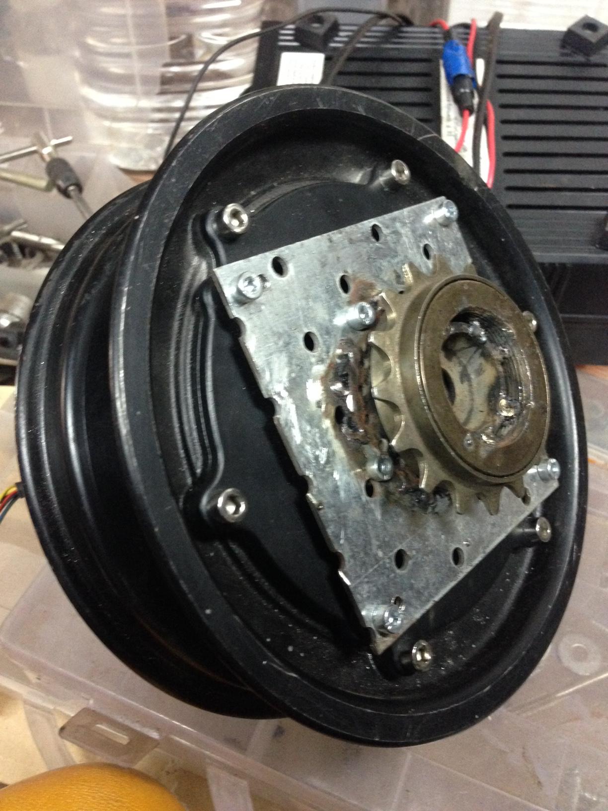 Двигатель с гироскутера, вроде как 250 ватт, то что нужно.