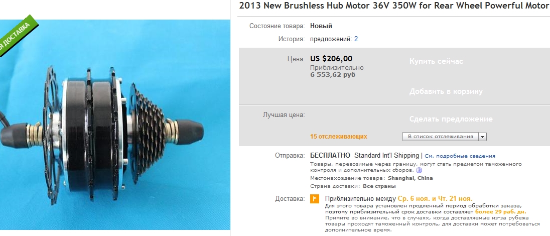 Заказал себе вчера миниМК конхис 36в 350вт с ЕМС доставкой вышло 7400р, даже у голденмотора 500вт моторы дешевле с ЕМС доставкой (сам не раз заказывал)