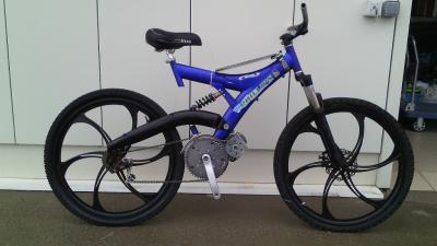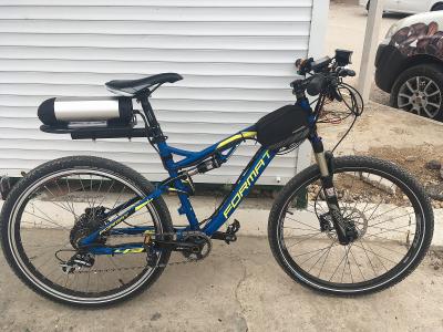 1) Двухподвес, mid-drive Bafang 1000W+редукторник 350W, Li-ion 5х12Ah 58.4V, max 53 км/ч. Дальность 120-150 км без педалей.