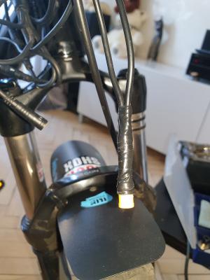 С них 2 провода идут к разьему, сам резал разьем,  знаю, с Холла надо 3 провода GND,  Vcc,  signal. Как позже узнал есть 2 модели таких датчиков, внешне полностью одинаковые. Одни герконовые,  другие с холом. Мне попались с герконом видать дешевая комплектуха. Если у Вас датчик тормоза горит на дисплее при нажатии ручки то у Вас Холл.