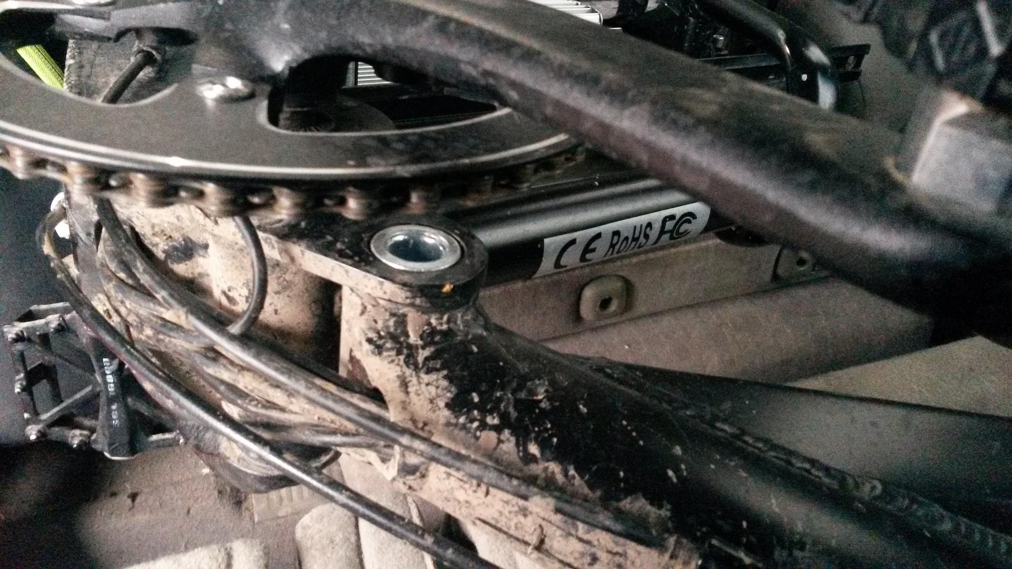 у установленного бафанга 750w есть щель между мотором и рамой? если есть то сколько мм?  у меня по низу кабеля, трубки и тросики идут...  и возможно ли вообще установить его на такую раму?