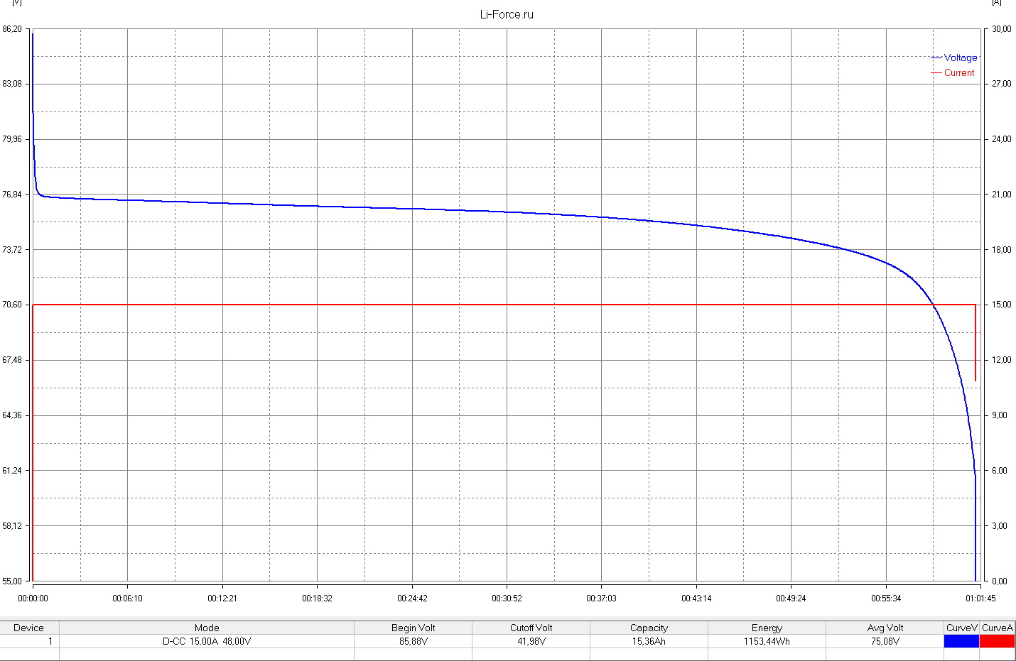 разряд током 40А от начала до конца нагрелась всего до 50 градусов, это очень хороший результат, учитывая то, что такой ток без перегрева от начала до конца сможет переварить только хороший лифер (железофосфат)