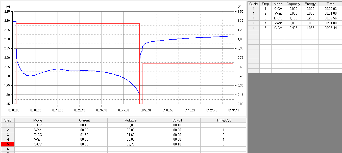 вот еще тест того же титанатного цилиндрика током 1С при -25 градусах цельсия