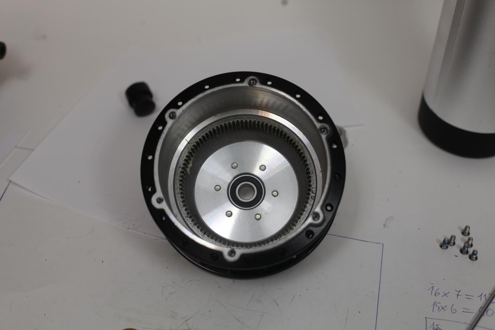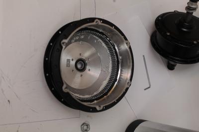 А вот "тормозная" сторона мотор-колеса, практически готовая к установке (вот только здесь фигурная шайба не той стороной установлена на ось):