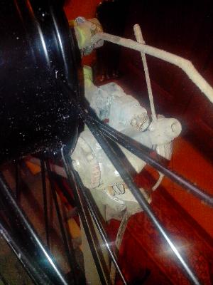 Заглушку то я и не заметил ) Спасибо. Ротор встал прямо между колодками, вроде даже не цепляет. Но цепляет за спицы болт, регулирующий внутреннюю колодку, на втором фото это видно, вообще спицы почти до крышки достают. Можно его как-то сдвинуть дальше от спиц? Похоже придется болт сточить, чтобы можно было старое колесо (на deore) ставить если нужно.