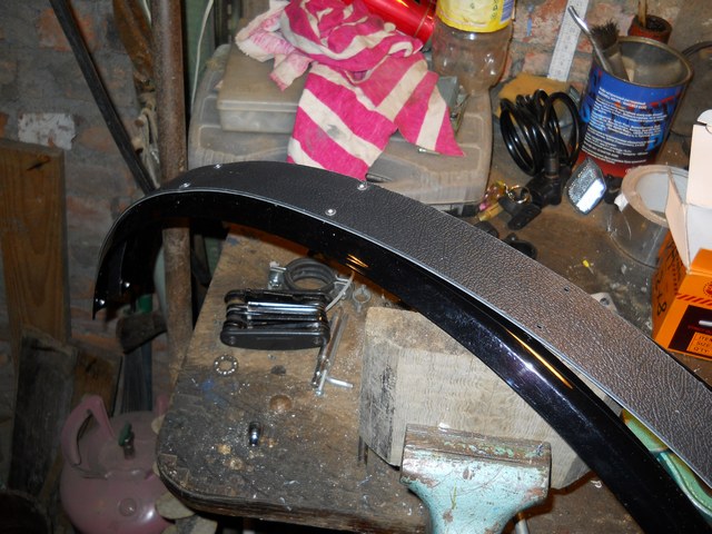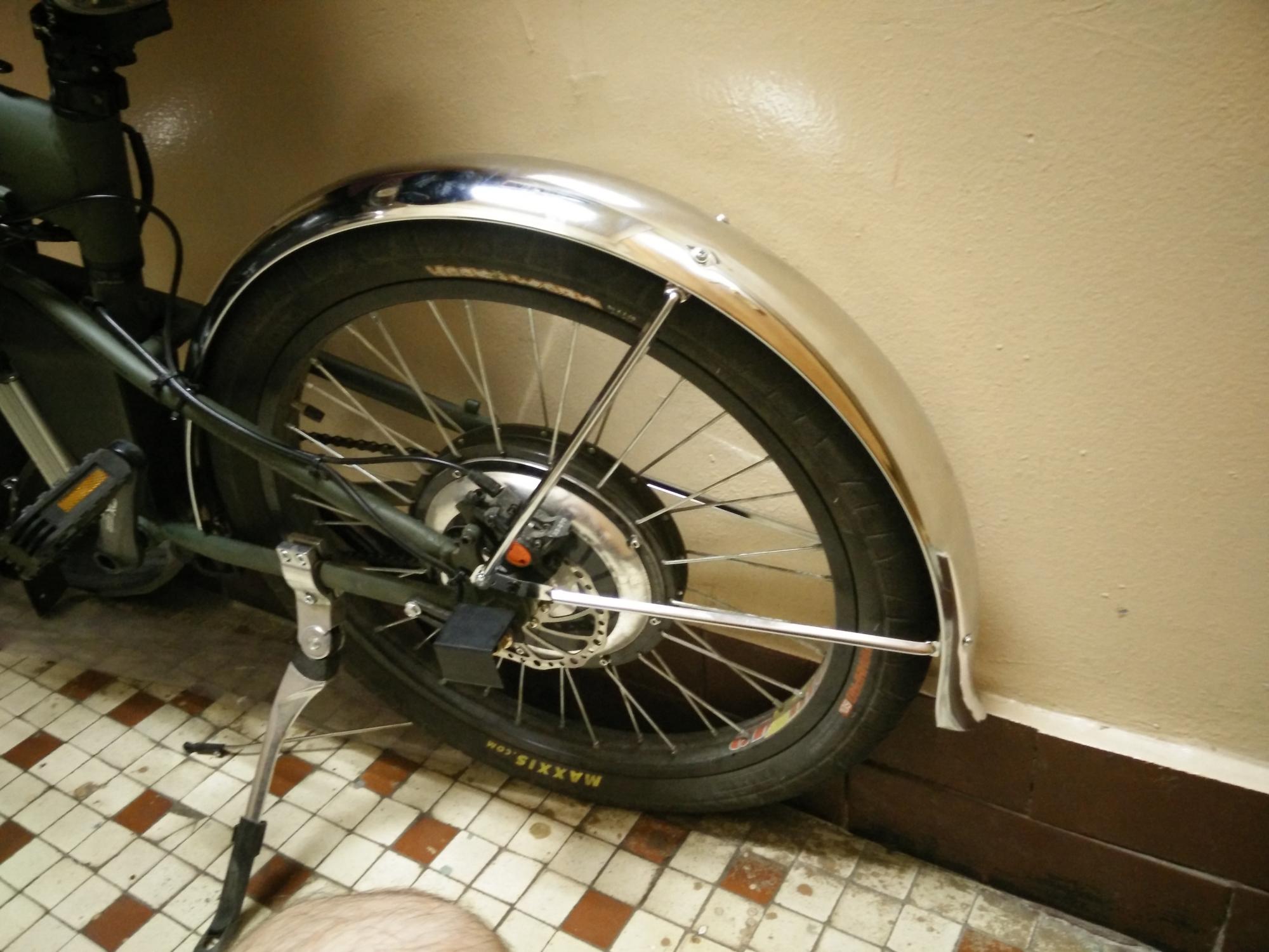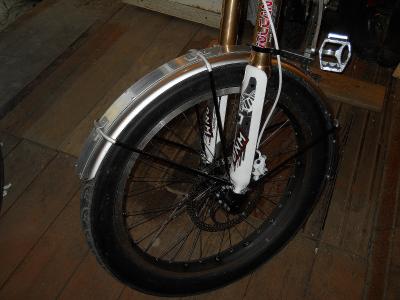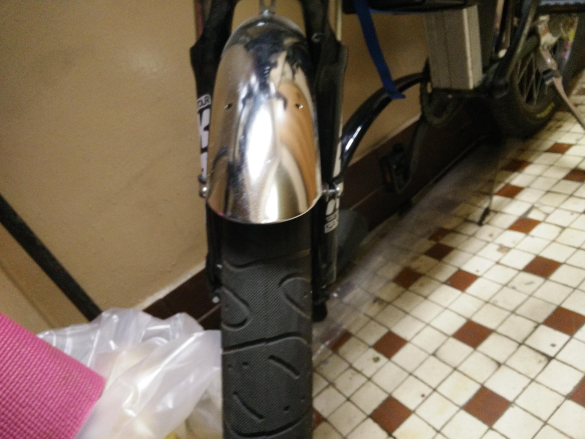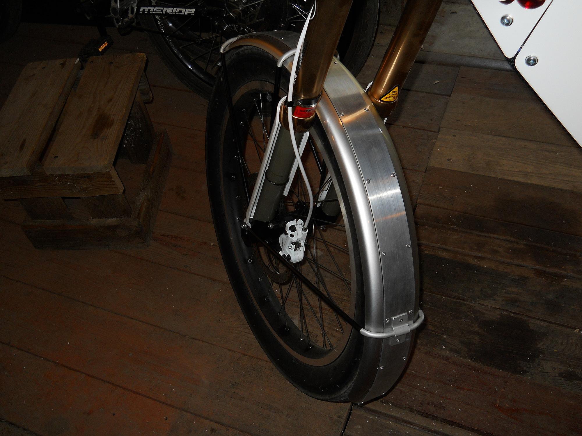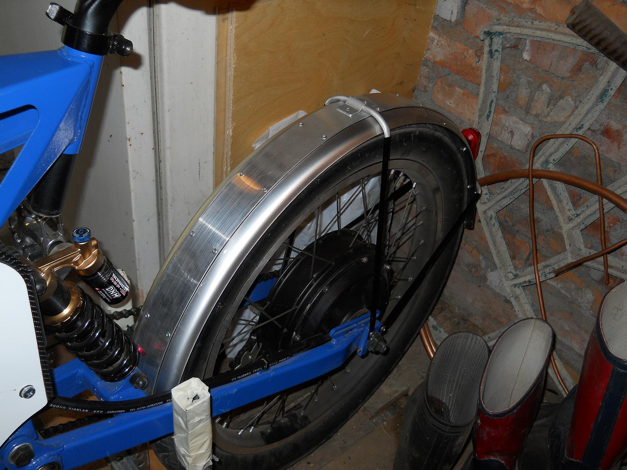 Вот такие крылья тов. [user]acyd[/user] наклепал мне, получилась жесткая прочная конструкция, главное алюминиевая целиком, камешки не страшны. Пока приаттачил только переднее, с задним посложнее.