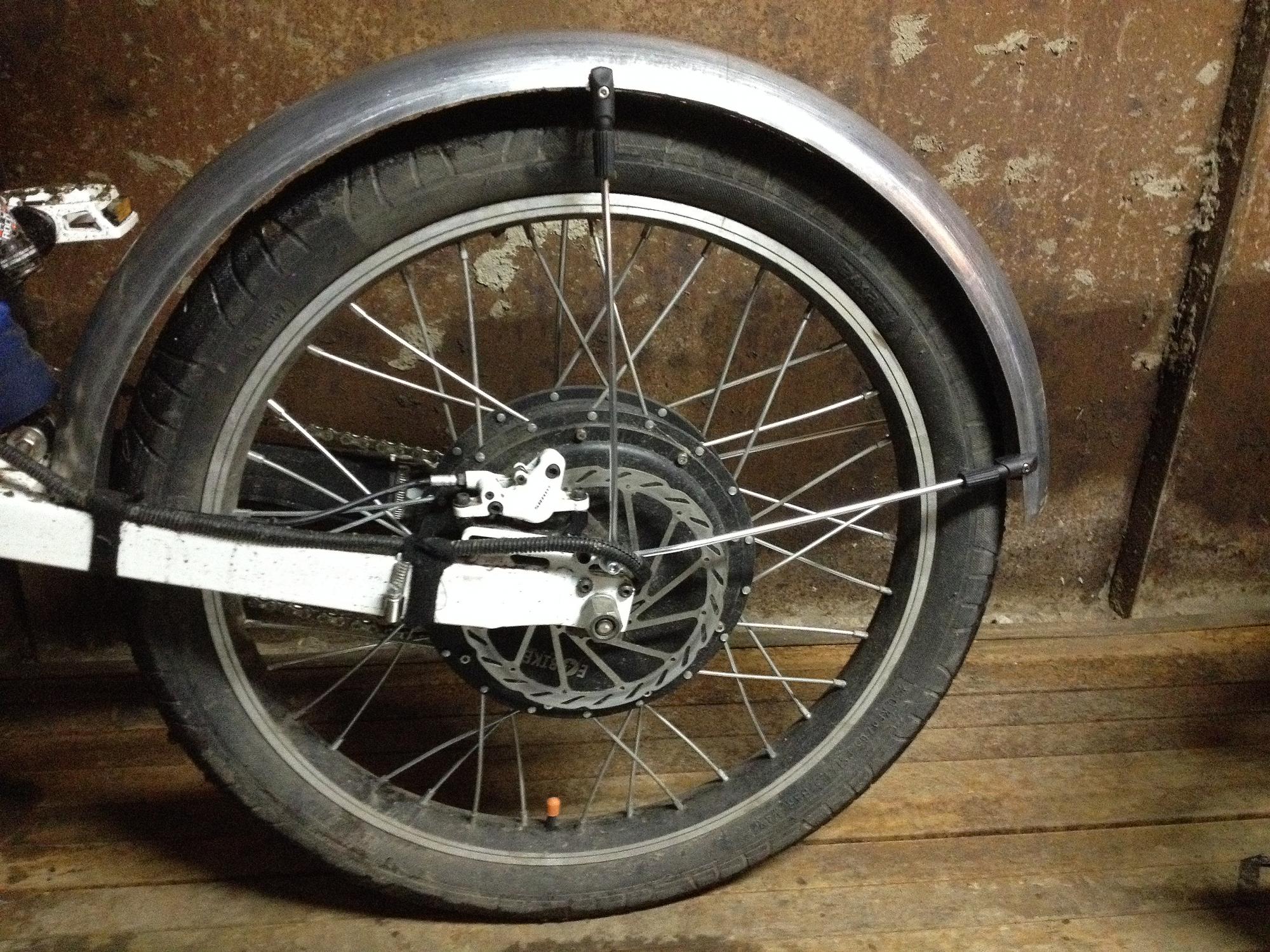 При замене задних родных покрышек на веле жены на 3" пришлось искать и широкие крылья.