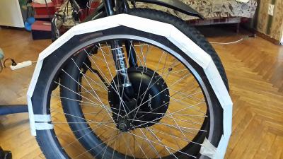 чета "крылья для широких покрышек" не особо защищают на скоростях 60+. Капли, ударяясь о внутреннюю поверхность крыла, брызгами разлетаются на пол метра в разные стороны. В результате нога до колена вся мокрая...