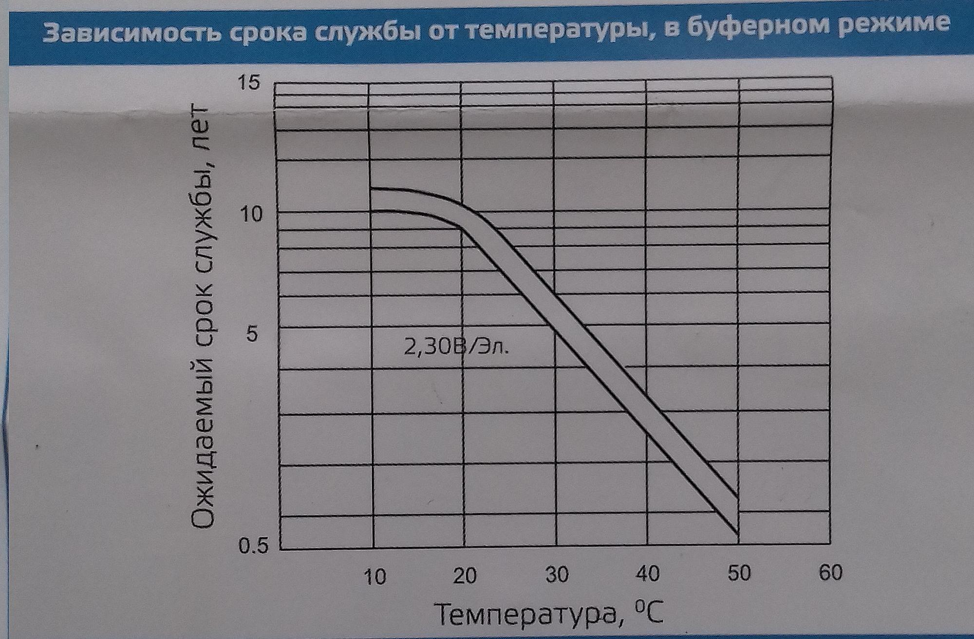 Заметьте, при увеличении температуры с 20 до 30 °C срок службы снижается почти в два раза.