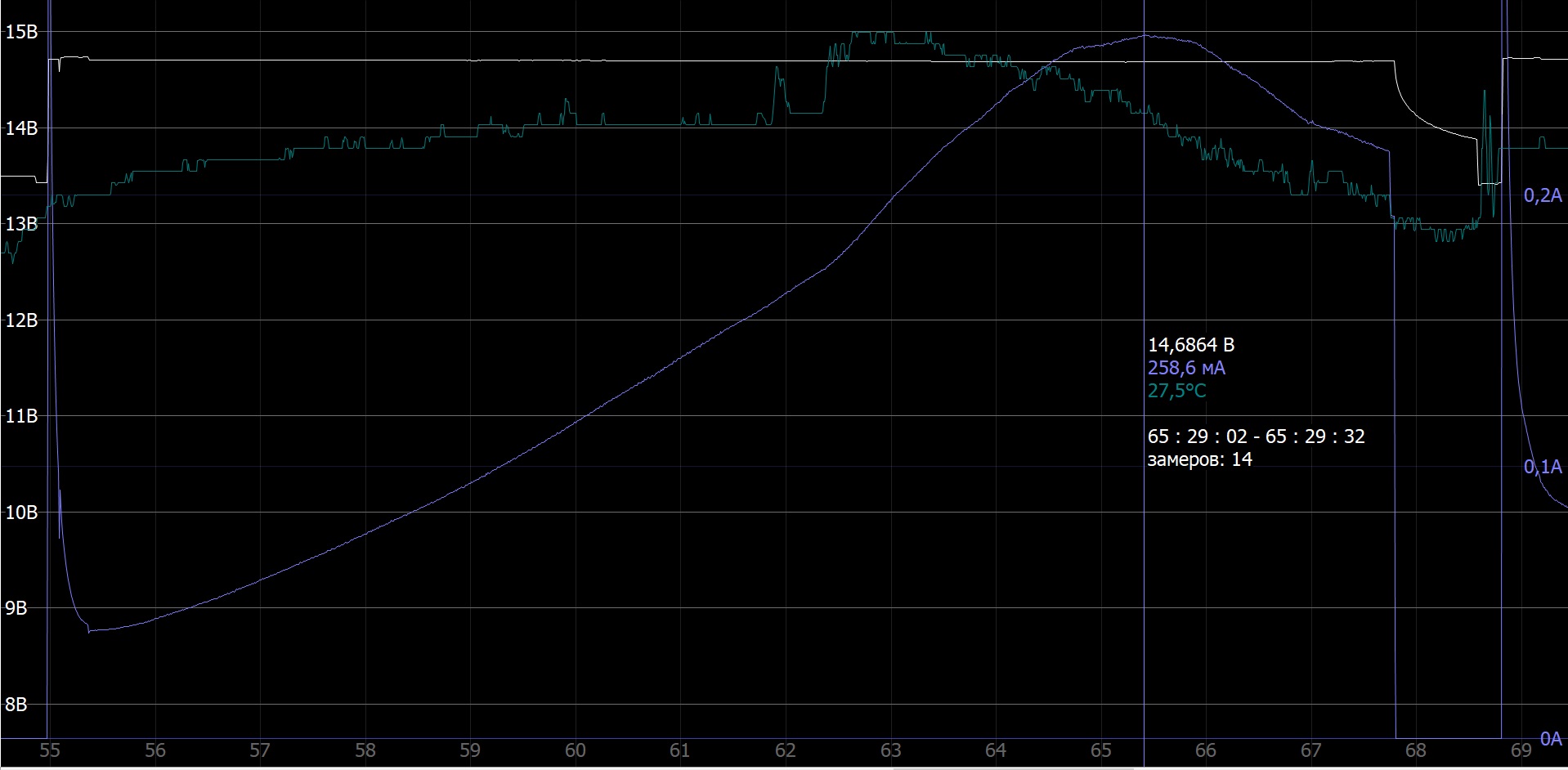 Коллеги, предлагаю посмотреть  реальный график заряда 9Ач AGM батареи: