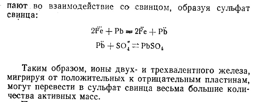 Автор видео говорит, что ионы железа разряжают отрицательные пластины, на самом деле разряжаются не только отрицательные, но и положительные.