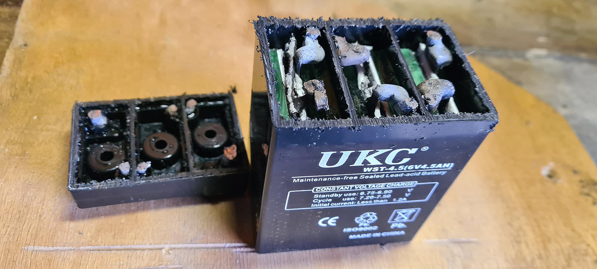 С недельку назад, принесли стационарный фонарь энергосберегайку на переделать на литий. Свинцовая акб 6в мертвее мертвых. Полный 0  по принимать и отдавать. Долил водички, ничего не изменилось...