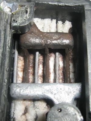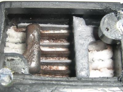 Отпилить бормашиной токосъемы и вытащить пакет.