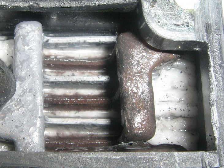 Я уж было подумал, что так постепенно вернётся его ёмкость. Но после 4-го цикла ёмкость рухнула до 3Ач. Начал заряжать. Зарядил, а тут глянь! В банках что-то болтается. Открываю резиновые крышки-клапаны, а там водой в банках всё залито. Из 6 банок в 4 плещется вода, 2 другие на пределе - вот-вот заплещется вода.
