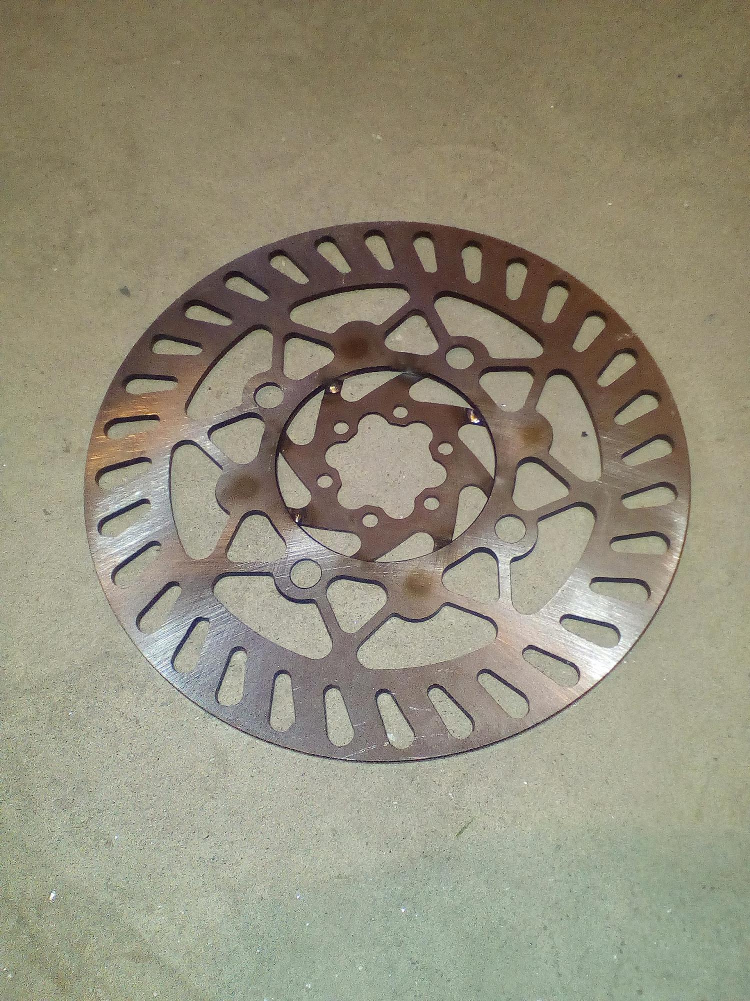 Вот и мне сдается что простой ротор на 180 будет ничем не хуже, только лучше, т. к. цельный. Плюс никакого гимора по адаптации соттв. тормозной машинки.
