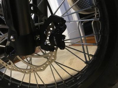 [user]e-scooter[/user], столкнулся с тем же самым и точно могу сказать, что нет, никак, надо или переходник пилить, или переходить на вилку от питбайка (перья fastace к примеру). У этой вилки крепление рассчитано на велотормоза с их усилием, даже у питбайка усилие переднего тормоза в разы больше, поэтому может вырвать крепление на DNM, но, у ДНМ можно поставить 2 диска, с обеих сторон, и даже втулка на алике под это дело есть