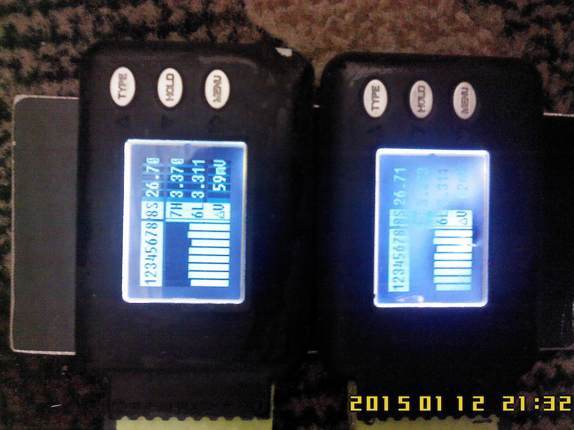Заметил что приборчик показывает всегда повышенное напряжение на ячейке № 3 проверяю мультиметром третью ячейку - напряжение точно вровень с остальными.. если подключить этот приборчик к другой батареи - та же самая картина, яцейка № 3 выше всех..